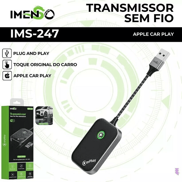 Adaptador Conversor Sem Fio Wifi CarPlay para Iphone com Adaptador Type-C Imenso