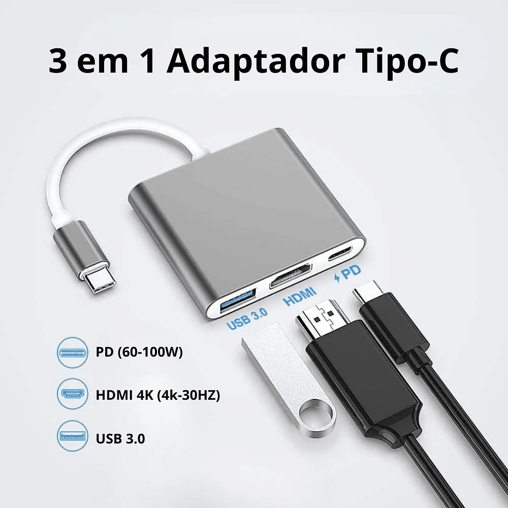 Adaptador Conversor Usb C Para Hdmi, Usb E Usb C Tomate