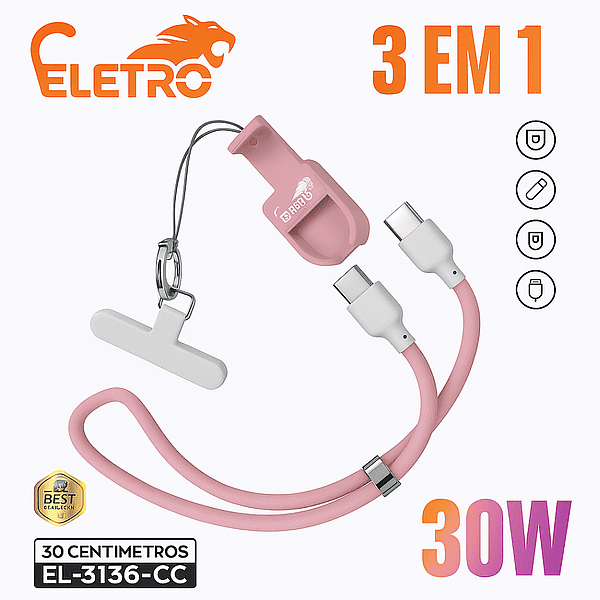 Alça para Celular com Cabo de Carregamento Tipo-C 30cm Eletromex