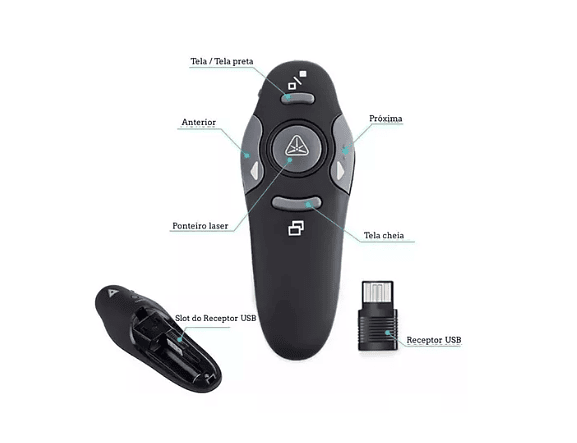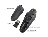 Conexão Usb vem dentro do próprio corpo do apresentador, basta abrir e instalar no seu micro ou notebook e sua apresentação será perfeita.