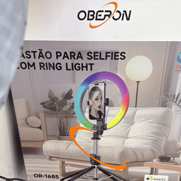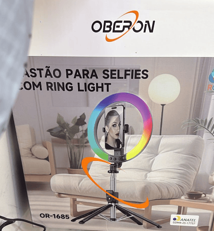 Bastão para Selfie Iluminador Ring Light Rgb Com Tripé 2m Obéron