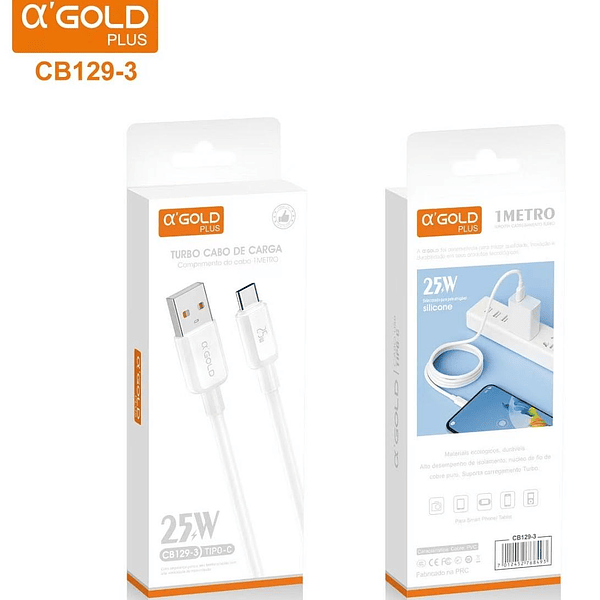 Cabo Dados Carga Rápida 25W Para Tipo C A'Gold