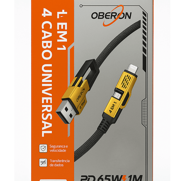 Cabo de Dados 4 em 1 USB/Tipo C + Iphone/Tipo C 65W 1M Oberon