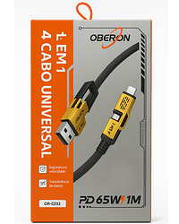 Cabo de Dados 4 em 1 USB/Tipo C + Iphone/Tipo C 65W 1M Oberon