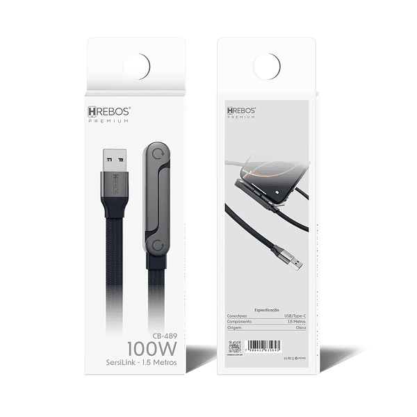 Cabo SersiLink 100W USB-A para Tipo-C Hrebos