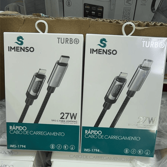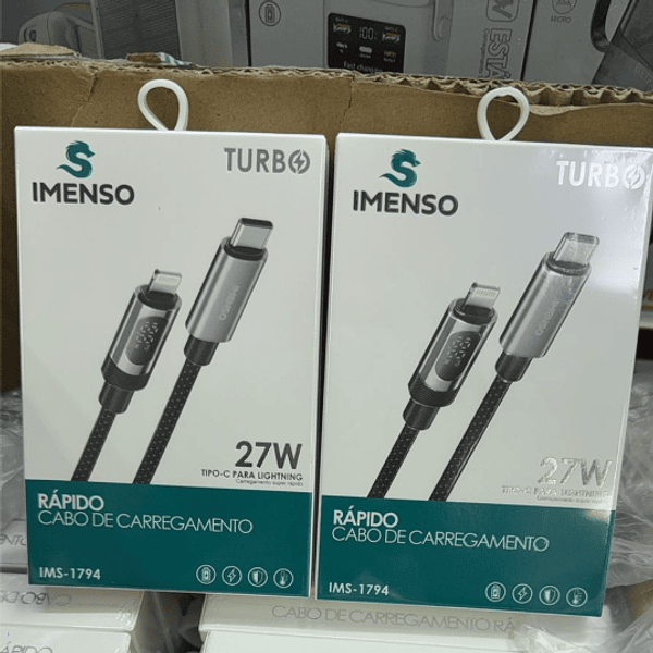 Cabo Tipo C para Lightning 27W Turbo PD Carregamento Rápido com Visor de Potência Imenso