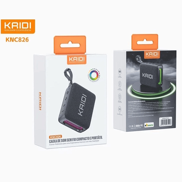 Caixa de Som Bluetooth 5.3 Compacta Sem Fio Portátil Kaidi