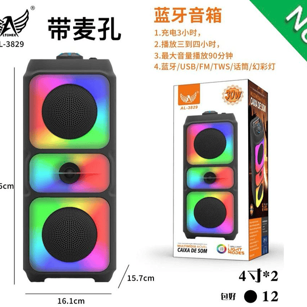 Caixa De Som Bluetooth Com LED RGB ALTOMEX
