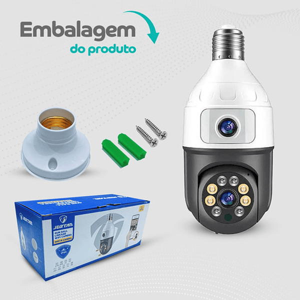 Câmera lâmpada giratória visão noturna dupla lente Jortan