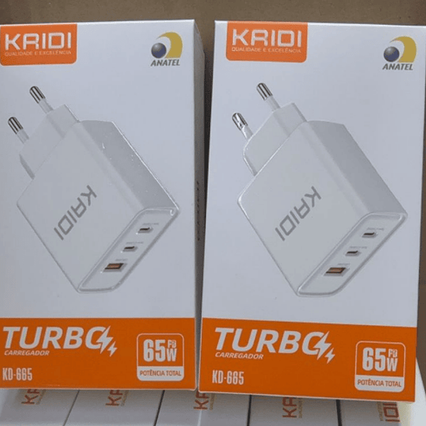 Carregador Fonte Turbo 65W 1 USB 2 Tipo C Kaidi