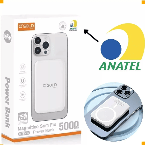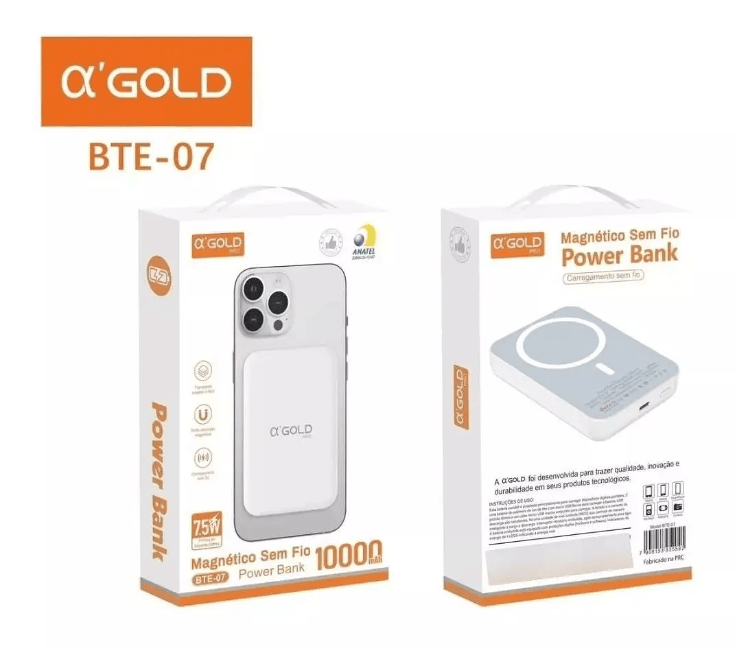 Carregador Por Indução Portátil Sem Fio Bateria A'Gold