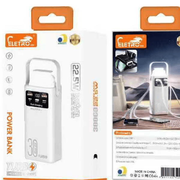 Carregador Portátil (Power Bank) 30000MAH Turbo 22,5w Eletromex