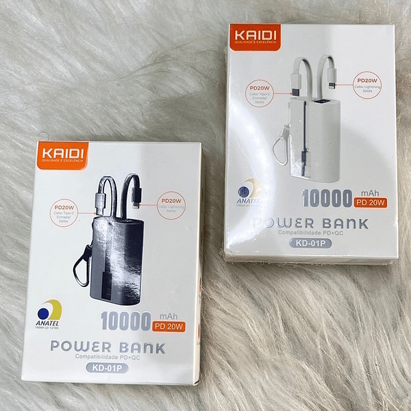 Carregador Portátil Powerbank Kaidi Turbo 10.000mAh BRANCA