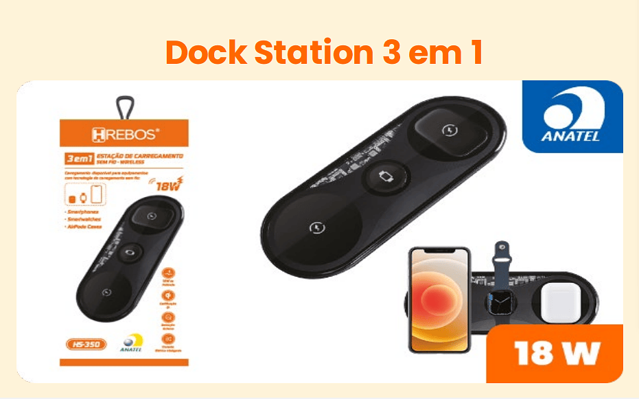 Carregador Sem Fio 3 em 1 Indução