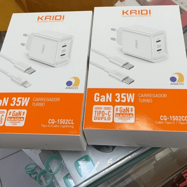 Carregador Turbo 35w Completo Duplo Tipo-C Kaidi