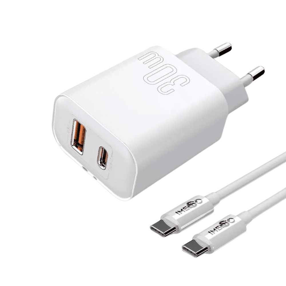 Carregador Ultra Rápido GaN PD 30W com Dupla Saída Imenso