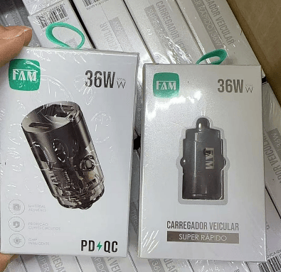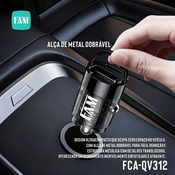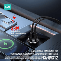 Carregador Veicular Super Rapido com Alça de Metal 36W Fam