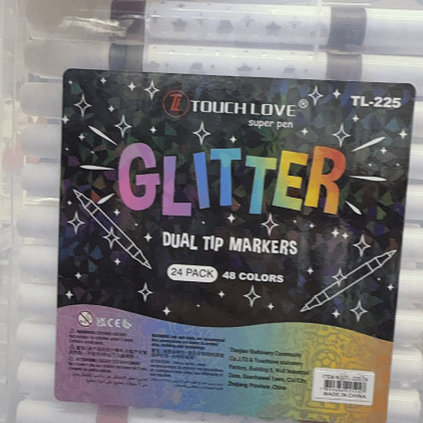 Estojo Canetas Marcadoras Com Glitter Ponta Dupla 24pçs(48 cores)