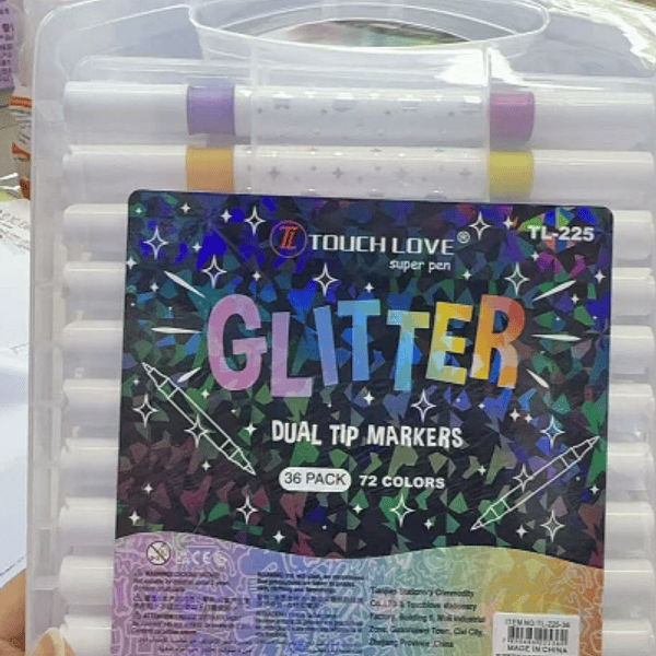 Estojo Canetas Marcadoras Com Glitter Ponta Dupla 36pçs(72 cores)