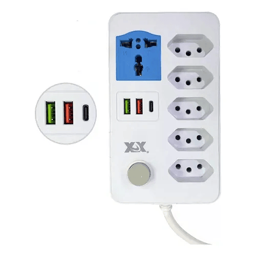 Filtro de Linha Portátil 5 Tomada 2 USB 1 Tipo C 2M Luatek