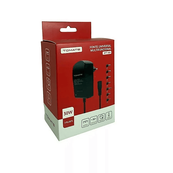 Fonte Universal Alimentação Multifuncional 7 Plugues 30w 12v Tomate
