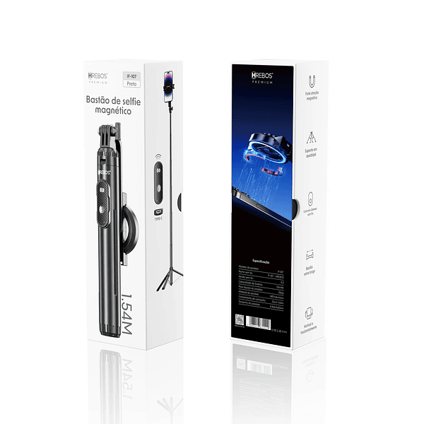 Hrebos Premium | Bastão de Selfie Magnético 1,54m