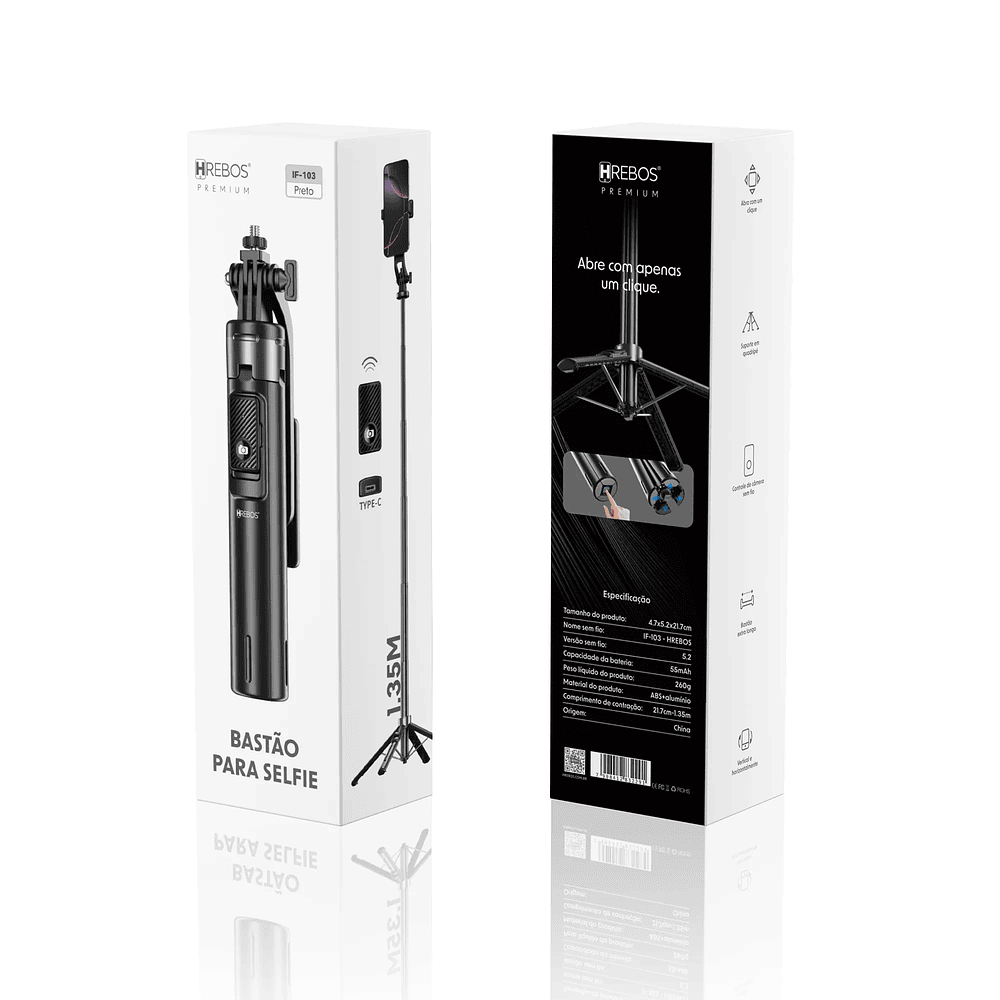 Hrebos Premium | Bastão para Selfie 1,35m
