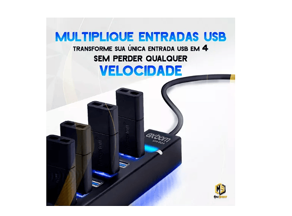 Com o HUB USB, você conta com 4 portas USB 3.0, que transferem dados a uma velocidade de até 5Gbps, dez vezes mais que uma porta 2.0. Você pode conectar até 4 aparelhos simultaneamente, pois o HUB suporta até 1Tb. Além disso. Pode ser usado em computadores e notebooks para conectar câmeras fotográficas, impressoras, smartphones, headphones, controles de game, teclado, mouse etc., tudo isso com qualidade e rapidez.