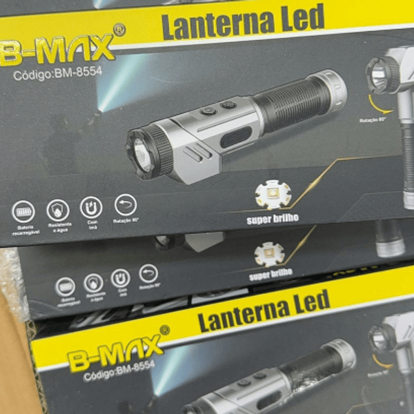 Lanterna Recarregável B-MAX Led Branco Magnética Resistente a Agua