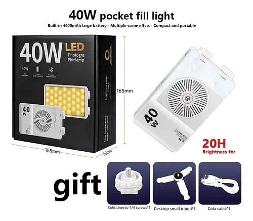 Luz De Preenchimento LED Mini Portátil De 40W Com Bateria Recarregável Para Vídeo