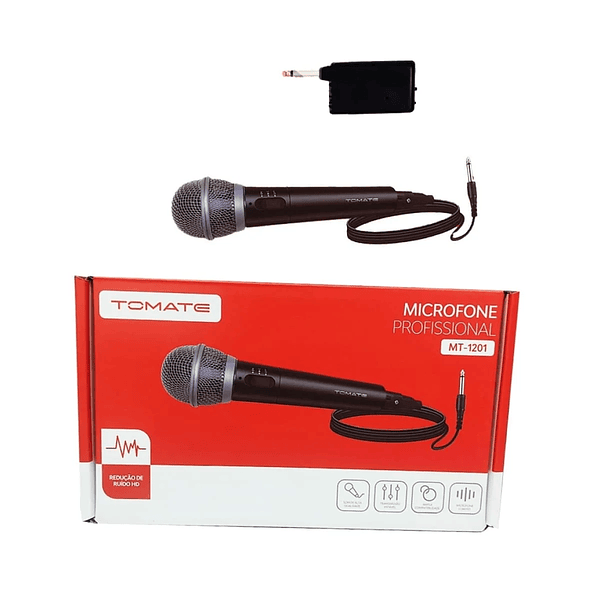 Microfone 2 em 1 Profissional Com e Sem Fio Tomate