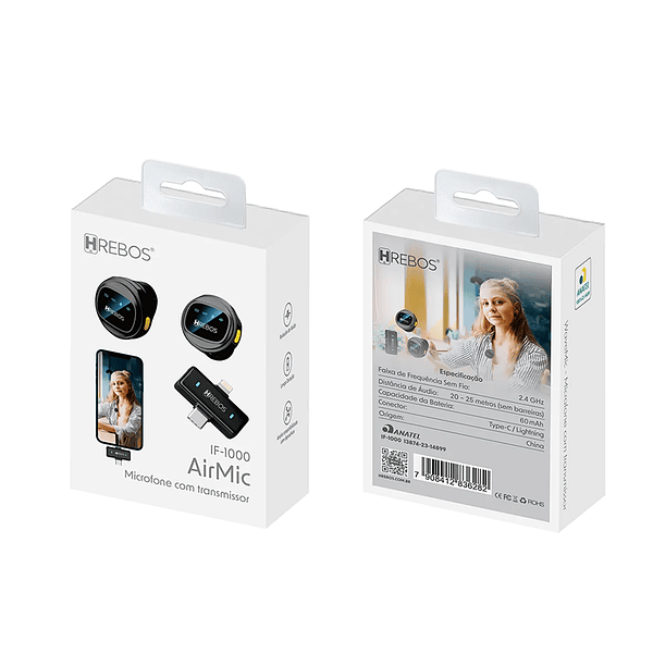 Microfone com Tranmissor AirMic 2 em 1 Hrebos