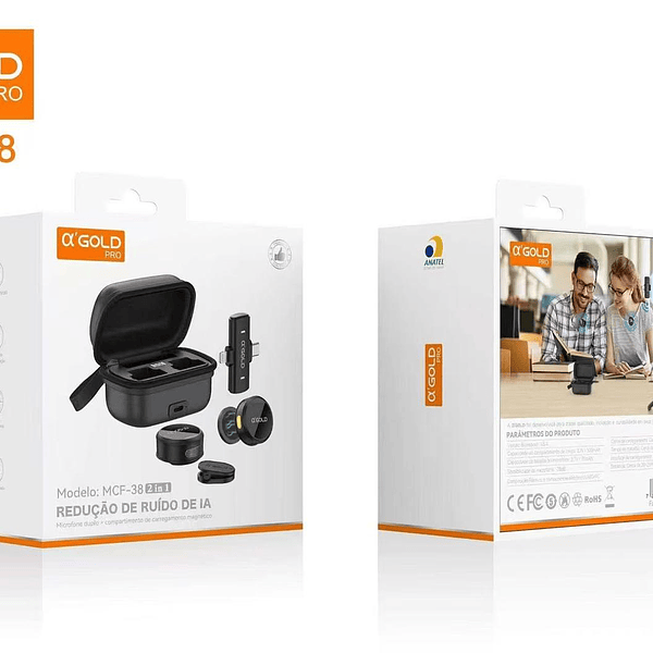 Microfone de Lapela Profissional com Redução de Ruido IA A'Gold
