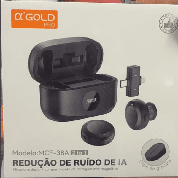 Microfone de Lapela Profissional com Redução de Ruido IA e Visor A'Gold