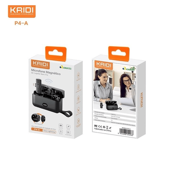 Microfone de Lapela Profissional Kaidi P4 Sem Fio Redondo Magnético