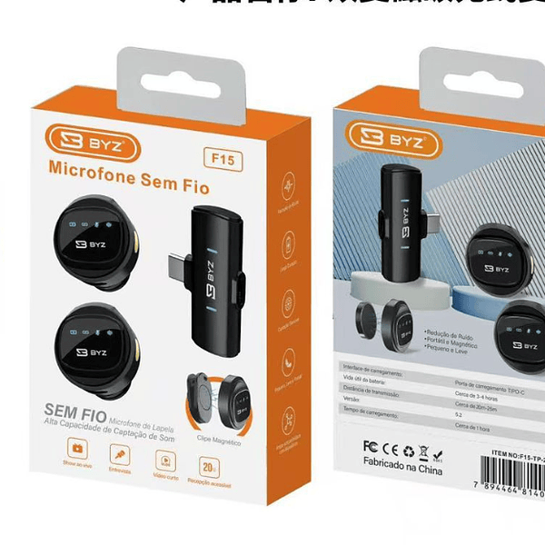 Microfone Lapela Duplo Sem Fio BYZ