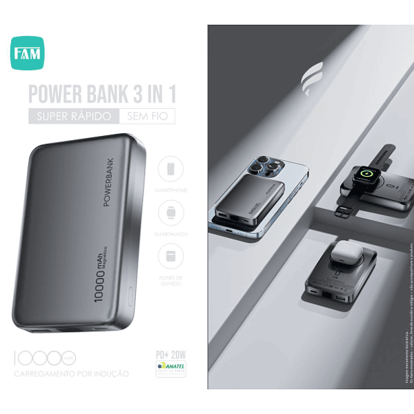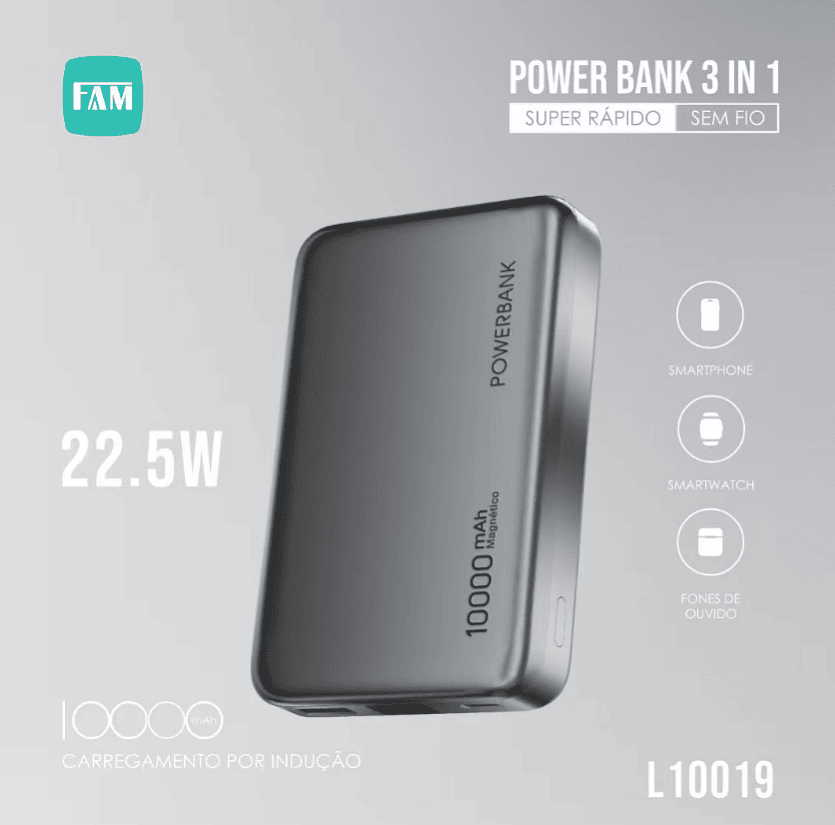Power Bank 10000mAh Magnético 3 in 1 Fam