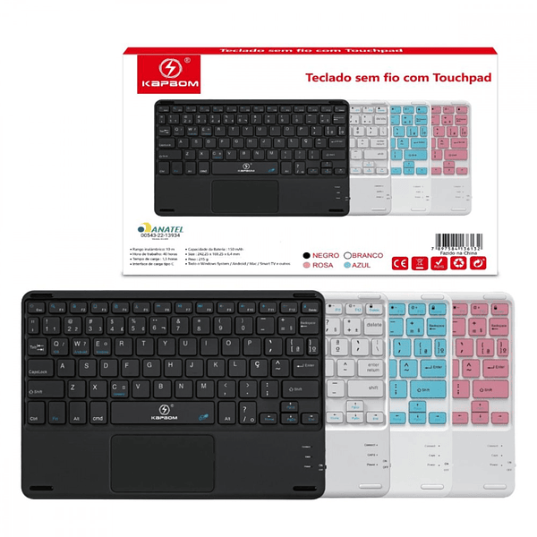 Teclado Compacto Sem Fio com Touchpad Kapbom