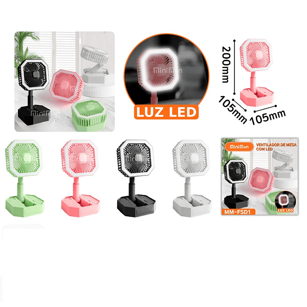 Ventilador Recarregável Com Luz Led Dobrável De Mesa USB Multifuncional Portátil
