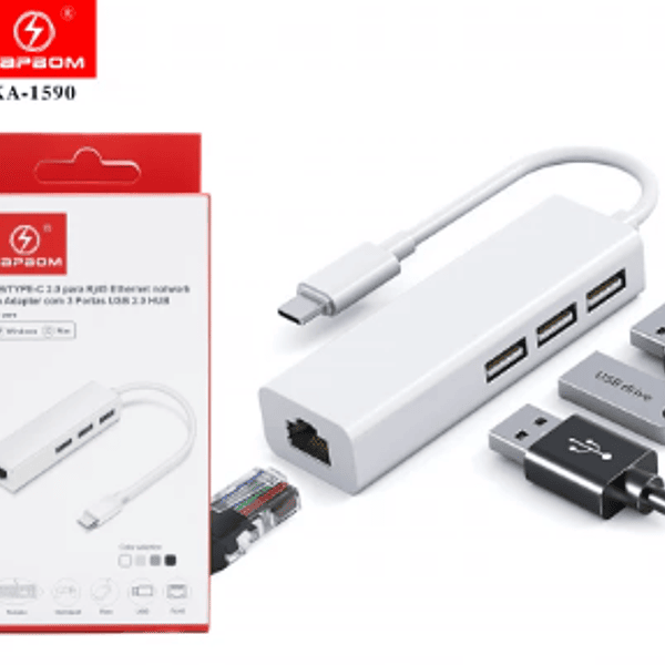 Hub USB 3.0 com 3 Portas + Adaptador USB para Lan Ethernet Exbom